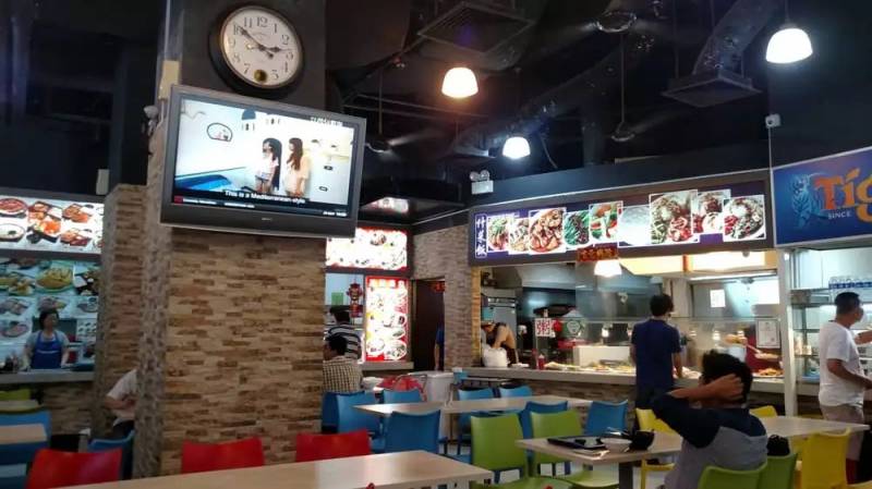 在新加坡,大大小小的食阁和餐厅都安装有电视机,来招待食客。