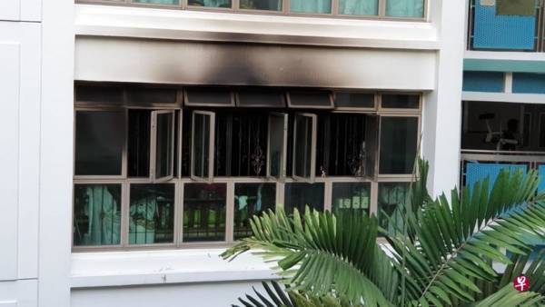 火患发生在榜鹅中路第163B组屋四楼。(梁麒麟摄)
