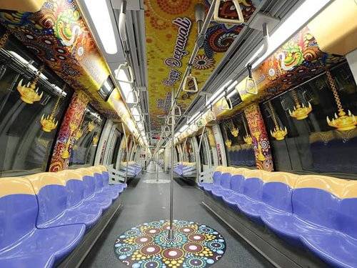 有网民在面子书上传多张照片,显示地铁站、车厢、巴士等都有屠妖节的祝贺语和彩绘。