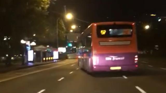 巴士之后又往右边快速切换两条车道。