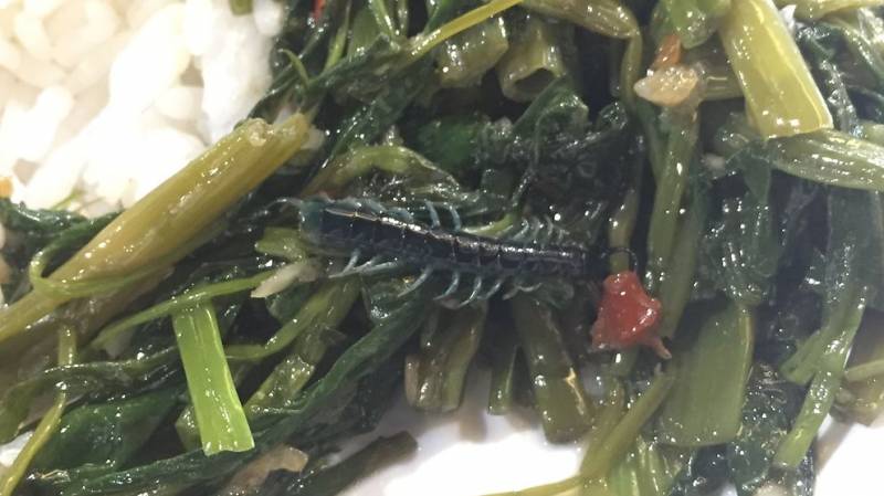 新加坡最近就有人遭遇了这样的事情,只不过,幸运的是,他发现的倒还是一条完整的虫,具体来说,是蜈蚣。