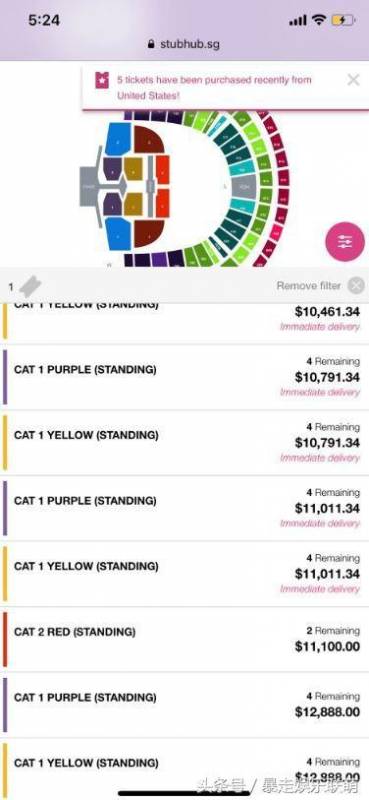 买不到票的粉丝们也在网络上惊见CAT 1站位原价约349新币(人民币约1755元),被炒至12,888新币(人民币约6万5千快),价钱上升将近36倍,让粉丝们生气不已。