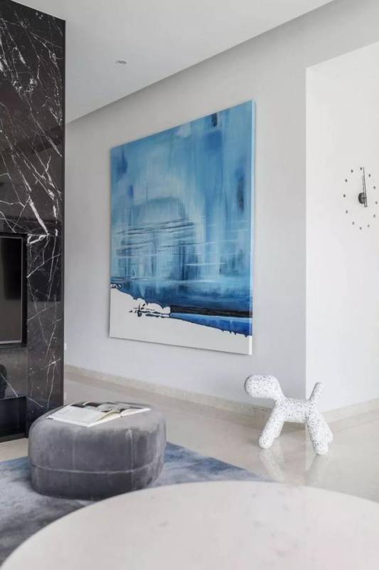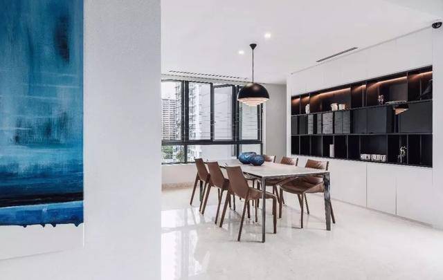 空间整体的中性浅色调,亦营造出最干净温和的视觉观感,同时辅之较大面积的靛蓝色块与之搭配,用冷调降低新加坡四季炎夏的灼热感。