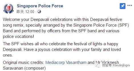 (排灯节快乐! 祝所有庆祝它的人节日快乐!新加坡警察部队制作了这个精彩的音乐视频来庆祝屠妖节。我为我们的警员们的才华感到震惊,他们可以唱歌, 跳舞, 玩乐器, 最重要的是他们让新加坡成为一个安全的家!祝所有印度教朋友能与家人, 朋友和邻居度过一个有意义的节日。愿排灯节充满幸福和温暖。)