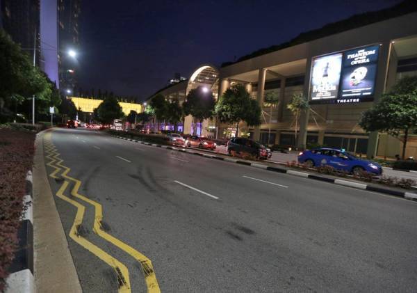 滨海湾金沙酒店外发生车祸,警方封锁一条车道调查。