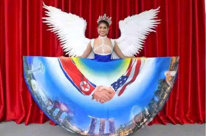 24岁的扎哈卡曼(Zahra Khanum)代表新加坡参加第67届环球小姐大决赛,估计本来心里还美滋滋滴!