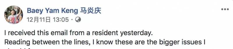 于是这位居民决定发邮件向淡滨尼集选区议员、新加坡文化、社区及青年部和交通部的高级政务次长马炎庆反映情况!