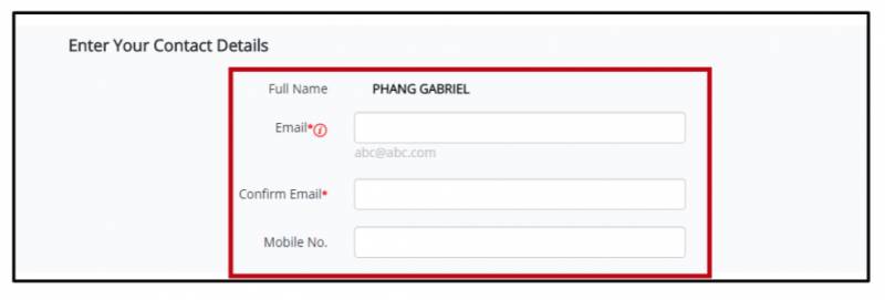 b) Ensure your name is correctly pre-filled and key in your contact details.
