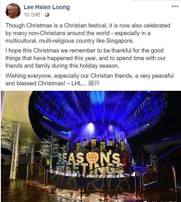 最为新加坡NO.ONE 的网红李显龙总理也在第一时间在脸书上送上了圣诞祝福——