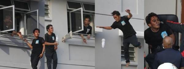 居住在六楼的拉希德(23岁,货仓助理)说,事发时他听到厨房外传来敲打声,他走过去查看,赫然看到一名男子危站在窗外。