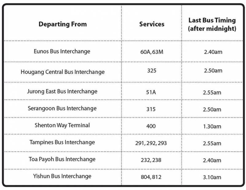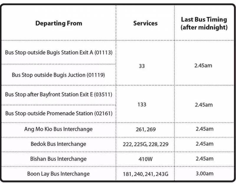 从海湾舫站(Bayfront)至武吉班让站(Bukit Panjang)的最后一趟地铁列车,出发时间则延长至1月1日凌晨2点27分。