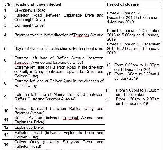 再让我们一起来看看巴士的时间,为了配合跨年活动,新捷运旗下至少有26条巴士线路和SMRT13条巴士路线延长!这次活动将会导致大量的人潮,因此部分道路也将会封闭!