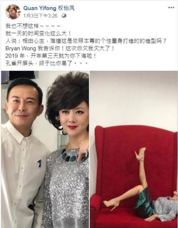 权怡凤在面子书上表明,“她也不想这样,一天时间变化那么大,人说,相由心生,难道这是依照本尊的个性量身打造的的造型吗?,王禄江,我告诉你!这次你欠我欠大了!”.