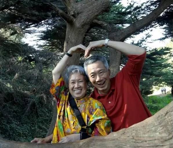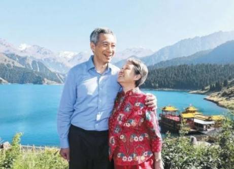 一小男孩认出了李显龙,提出合影要求~总理立刻开心地答应,起身后,还不忘温柔地转身拉起夫人何晶。
