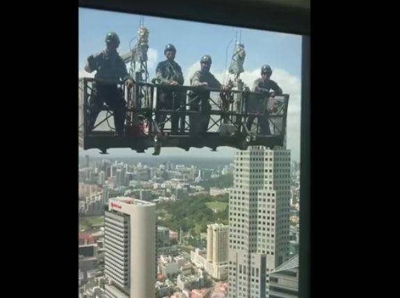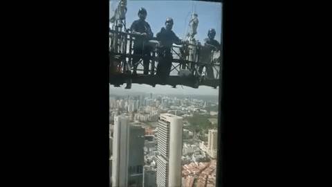 据了解,视频中的建筑是莱佛士坊(Raffles Place)的Republic Plaza,有280米高,66层,是新加坡最高的摩天大楼之一。而工人们当时正在大楼的58层楼。