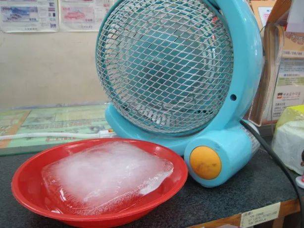 做一台空调当然不可能,但是我们可以试着在风扇前摆一盆冰或者凉水,当风扇吹向冰块的时候,你就会感觉到阵阵爽快。
