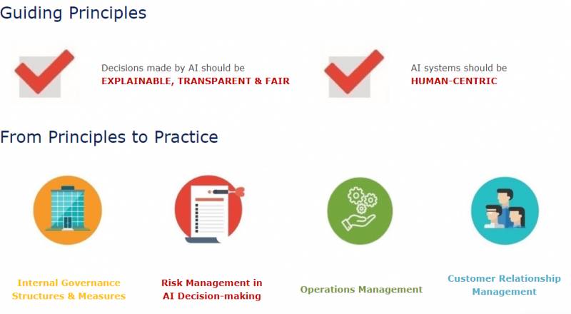 框架的两个关键主导原则是协助企业确保以人工智能做出的抉择能有合乎解释的依据、具透明度,并且对消费者公平;