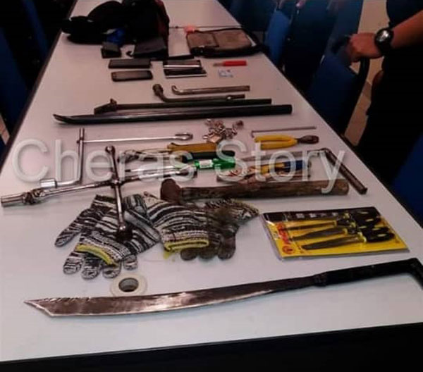 警方当场逮捕3名嫌犯后,起获一些刀械和破门行窃的工具和手套,并查知他们所驾驶的轿车为报失车。