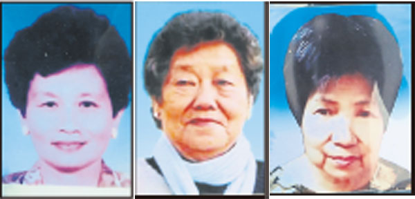 (左起)刘润莲遗照、张宝遗照、罗亚银遗照