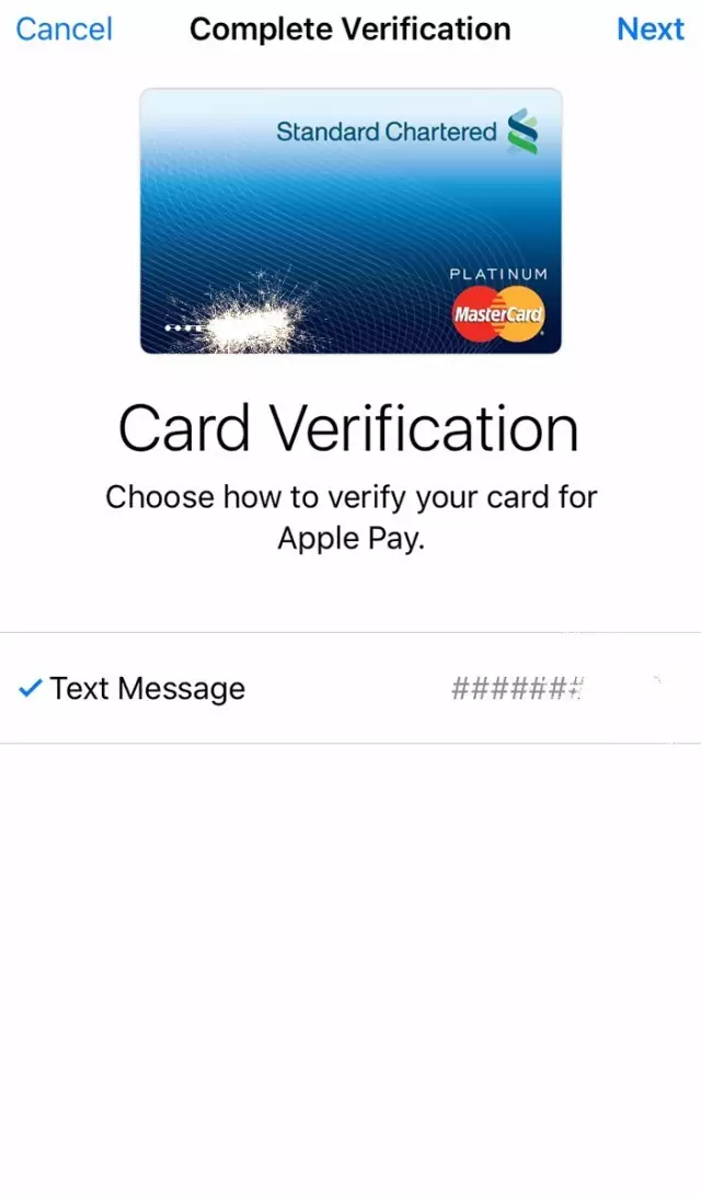 Apple Pay收集完信息后,银行会给你银行卡绑定的手机号码发送验证码信息。