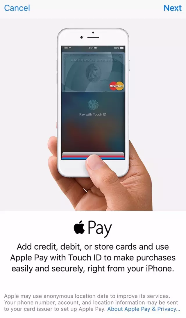 步骤二:进入 Wallet 后,可以发现增加了ApplePay功能。