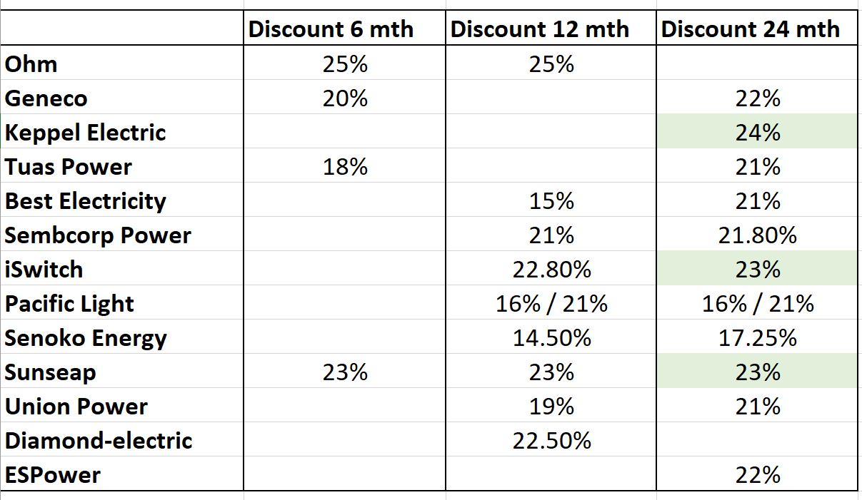 Fixed 18 months: Tuas Power look good for those who intent to sign up for the 24 months plan. You are been tied up for shorter contract period with comparable 24 months plan rate.