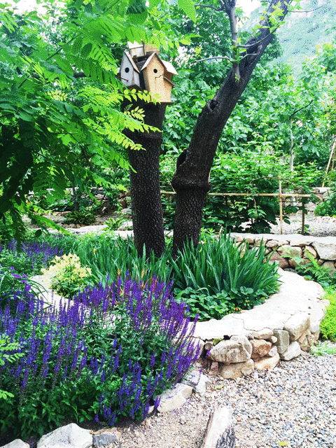 当初就是想周末有一个地方,可以种花、种草、种菜,过一下田园生活吧。房子有400多平米,加上花园和果园,大概有5000多平米,断断续续盖了两三年才完成。