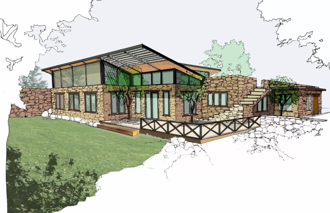 刚好在附近的山里,我们见到了好多用石头砌成的梯田,就想到了用石头来建这个房子。