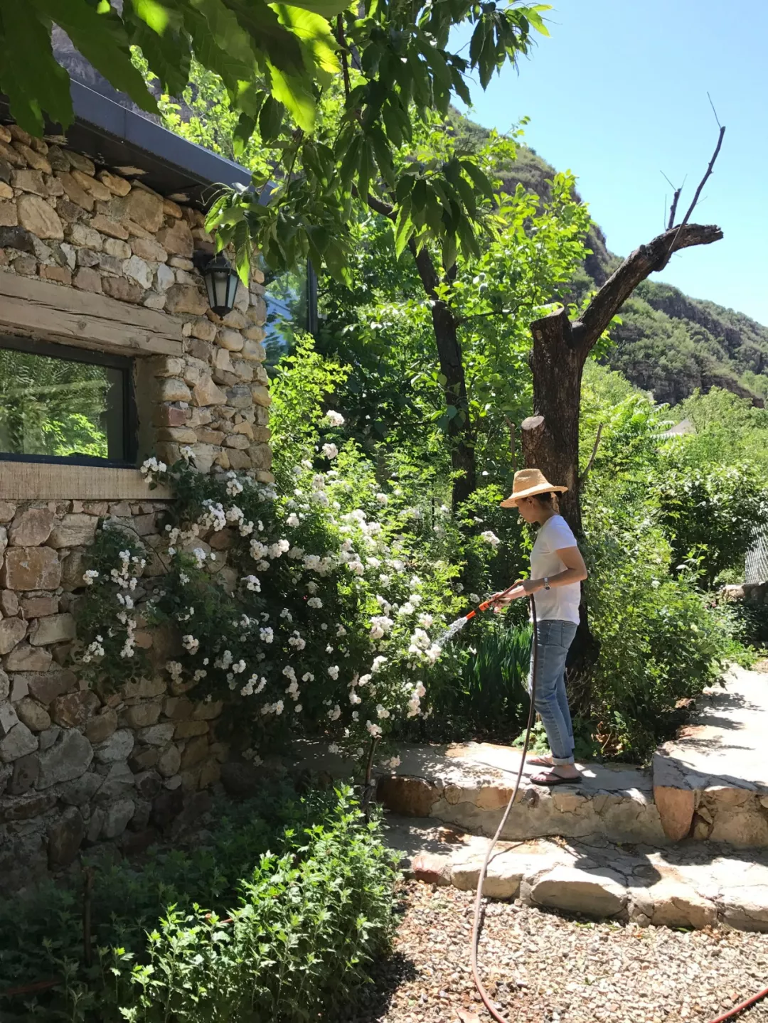 整栋房子由石头砌成,包括围墙和房子后头的梯田。这些石头都是山里采来的,我先生算过,用到的石头超过了3000立方米。