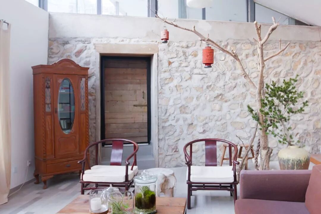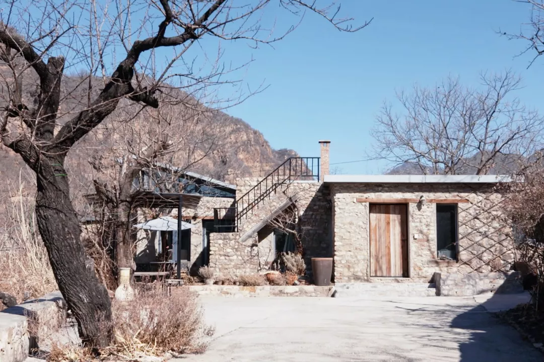 这个石头房子,我们叫它“山林石屋”,这里四面环山,漫山遍野都是树林。位于北京的平谷郊区,算是六环外面了,离机场有80多公里。