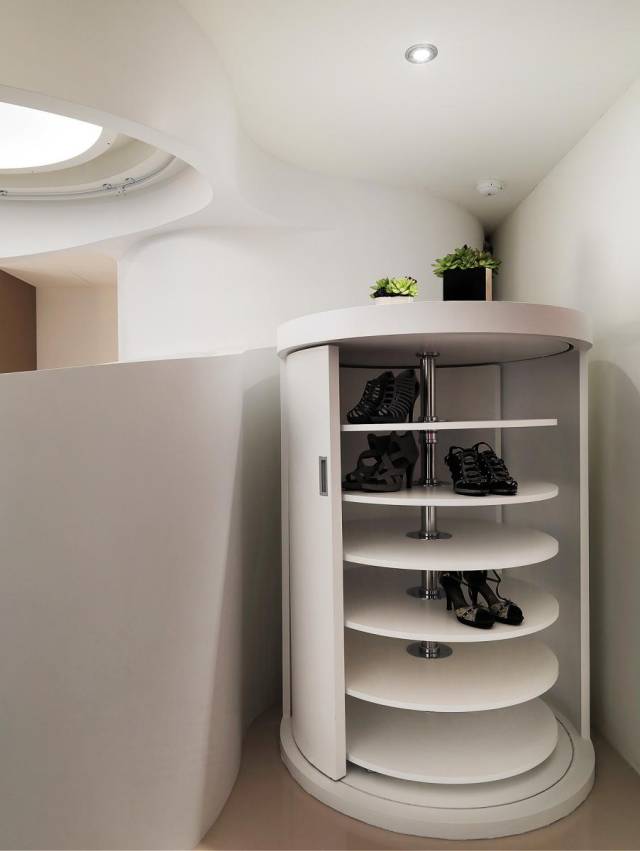 旋转式鞋柜放女生的高跟鞋最好,女生轻轻转着鞋柜挑选心仪的高跟鞋时,也是一种风情~
