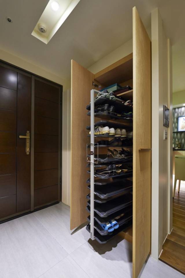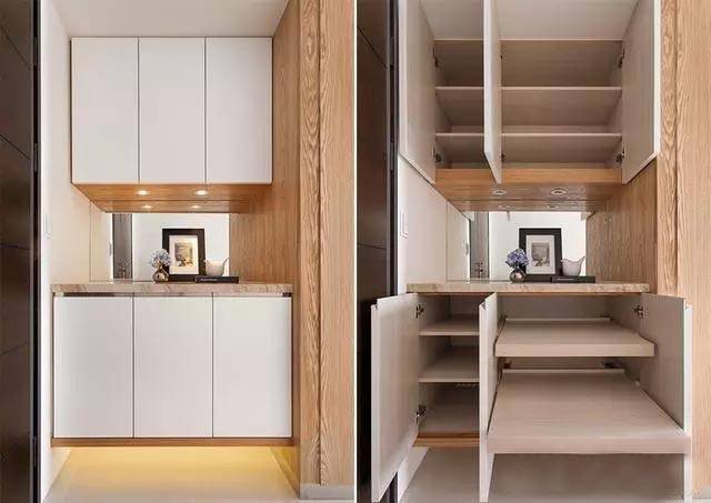 可推拉式鞋柜,深度要够深,可以大大节省长度。