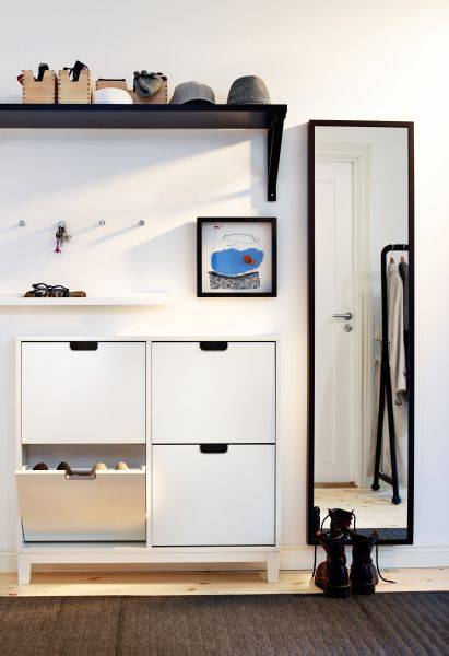 或者在设计鞋柜时,做成半开放抽屉式鞋柜,既保证了通风,又不影响美观。