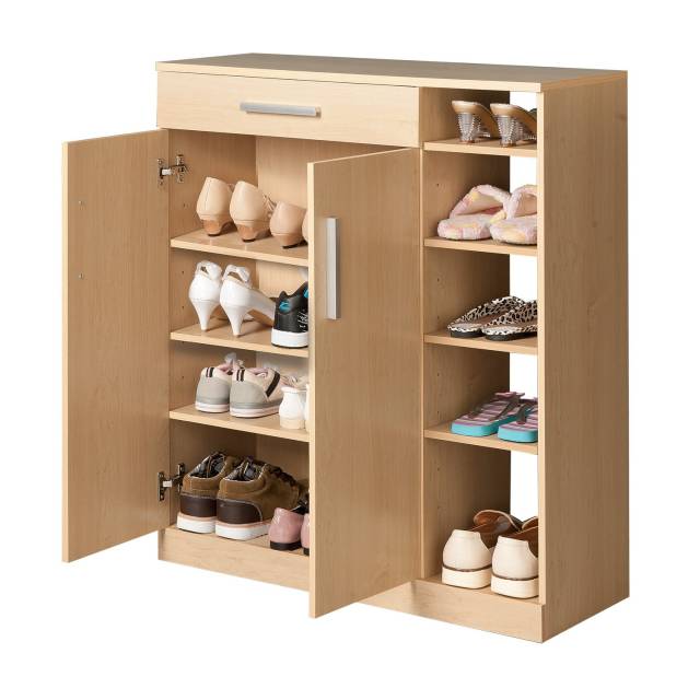 一般鞋子有平方和直插两种摆放方式,所以常见的鞋柜也有翻斗鞋柜和平放鞋柜两种。