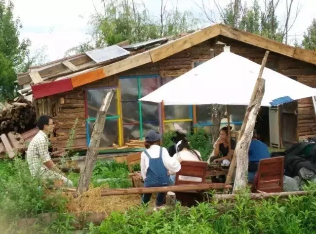 △ 当时地里没通电,所有的事都得靠手去做。整整一个月,小丽每天在地里除草,挖坑,削木头。用手削,用手刨,用手搬。盖木房子的木料是从旧货市场买来和朋友一根根扛进来的,房子里的家具也是到处找来的旧物件,旧门板当饭桌,车轮胎当靠椅,空酒瓶插上地里的野花就成了花瓶。