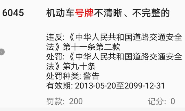 其实辽宁省内的相关法规也是这么规定的。比如,该省规定 “机动车牌号不清晰、不完整” 的,才需要处以罚款200元的警告类处罚。因为这些情况已经影响到了车牌号的识别。