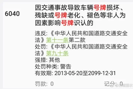 所以,如果交警真要处罚的话,那么这个车牌也顶多属于前面提到的那个只需要口头警告,不需要罚款的“非人为情况导致车牌损坏、老化”的情况。