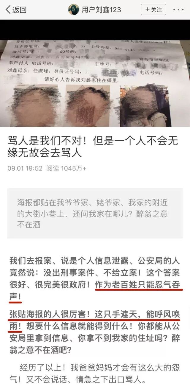 到了今年5月,江歌妈妈实在找不到她们,为了让刘鑫现身,她在网上公布了刘鑫全家的信息……