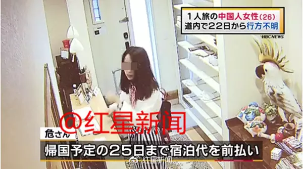 而27日北京时间11时许,日本《北海道放送》栏目播出的一段视频则展示了危秋洁20日中午在旅馆入住时,旅馆中的监控摄像拍下的画面。