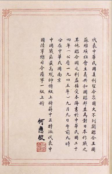 同年9月9日,中国战区的日本投降签字仪式在南京举行。