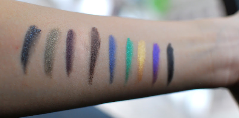 9支眼线笔小套装,全部都是短柄的,颜色看起来都很欢乐