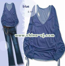 明亮的紫蓝色两面件套,小喇叭牛仔裤可以掩盖不完美的腿型,配饰选择蝴蝶结腰带,粉红色手带为你加入一丝妩媚。