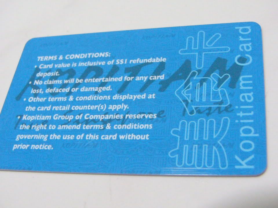 嘻嘻,偶搞到张黄颜色的卡卡,20%折扣.....我现在只是在NUH吃,不知道其它kopitian可不可以用的...........